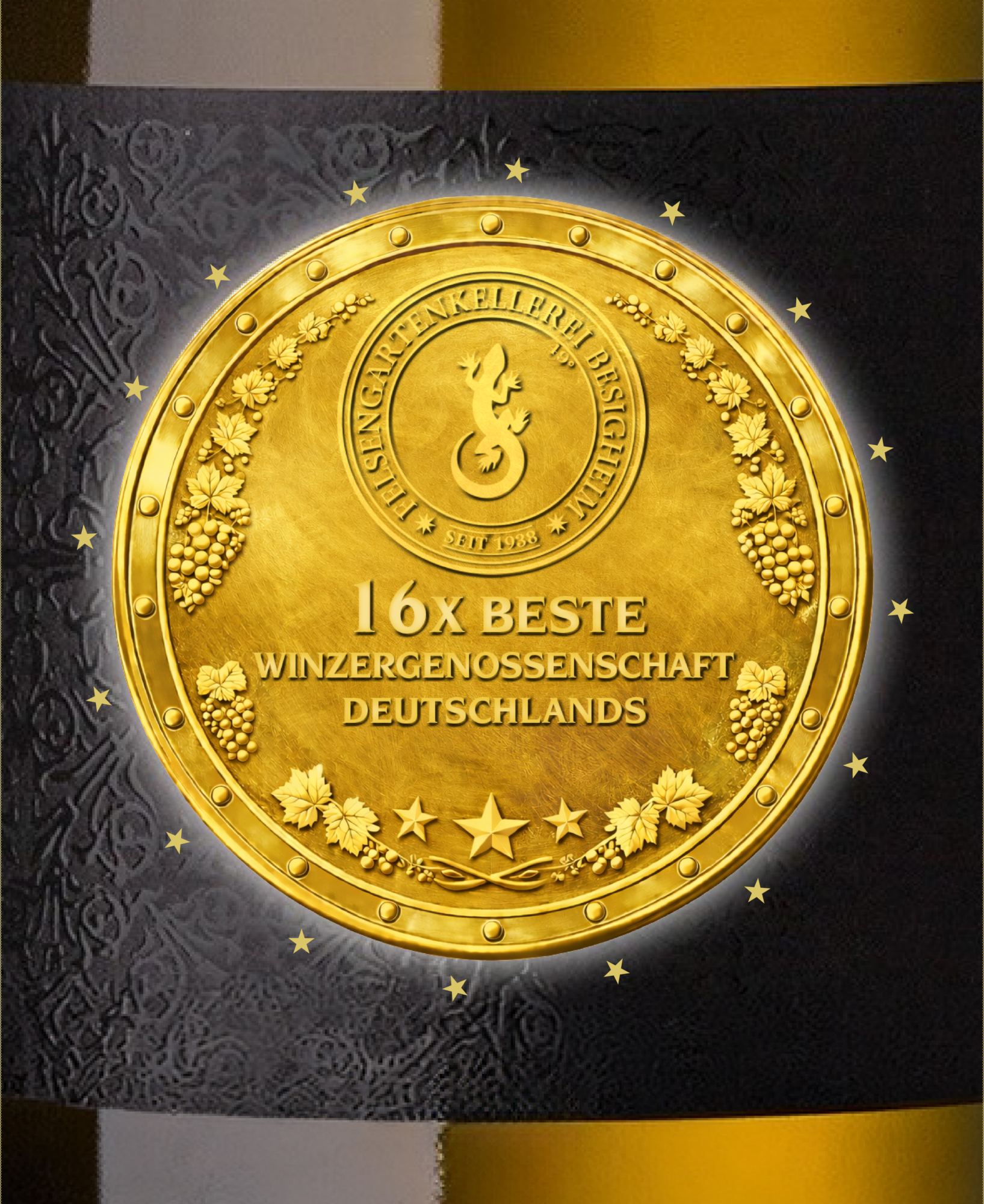 Im idyllischen Neckartal, zwischen Stuttgart und Heilbronn, ist die Felsengartenkellerei Besigheim zuhause. Eine bedeutende Weingärtnergenossenschaft in Württemberg. Ihren Namen verdankt sie den Muschelkalkfelsen, die das Landschaftsbild hier prägen. Steil ragen sie empor, eingebettet in eine herrliche Weinbergslandschaft mit terrassierten Steillagen und Trockenmauern. Die Sonnenstrahlen fallen im idealen Winkel auf die Reben, Felsen und Trockenmauern verstärken sie noch und speichern ihre Wärme. Ideale Bedingungen für Weine von allererster Güte. Auf den Steinen genießt die Mauereidechse die Abendsonne, unser Wappentier. Im Zeichen der goldenen Eidechse sind 400 Weingärtnerfamilien aus 10 Weingemeinden mit 540 Hektar Anbaufläche vereint.