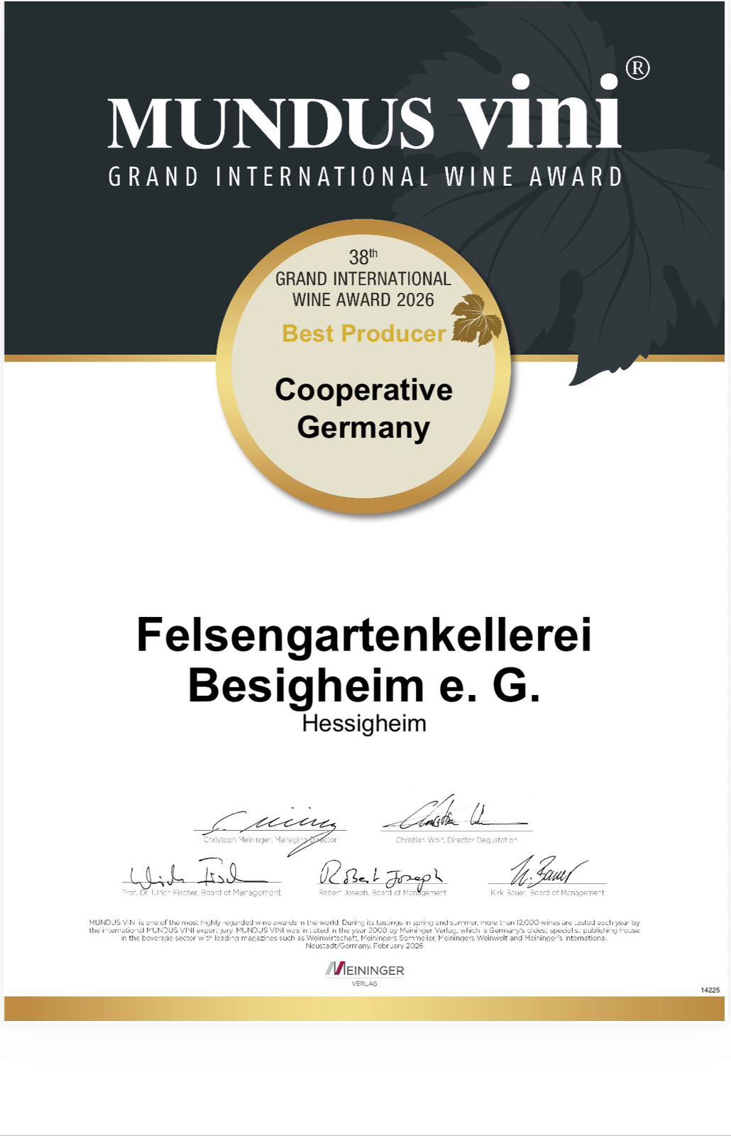 Best Producer Germany Ausgezeichnet beim mundus vini spring tasting 2026